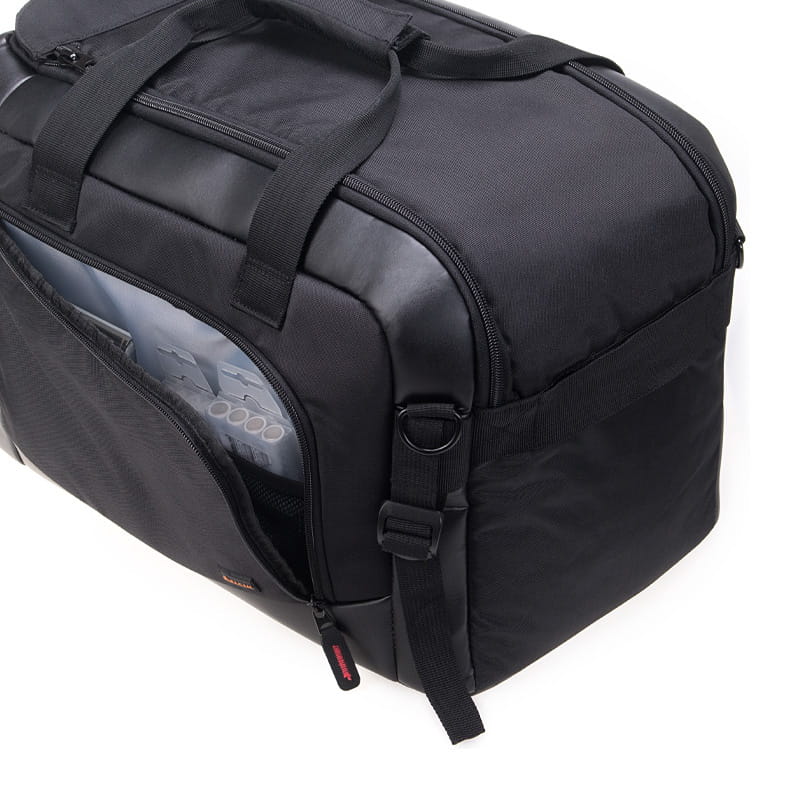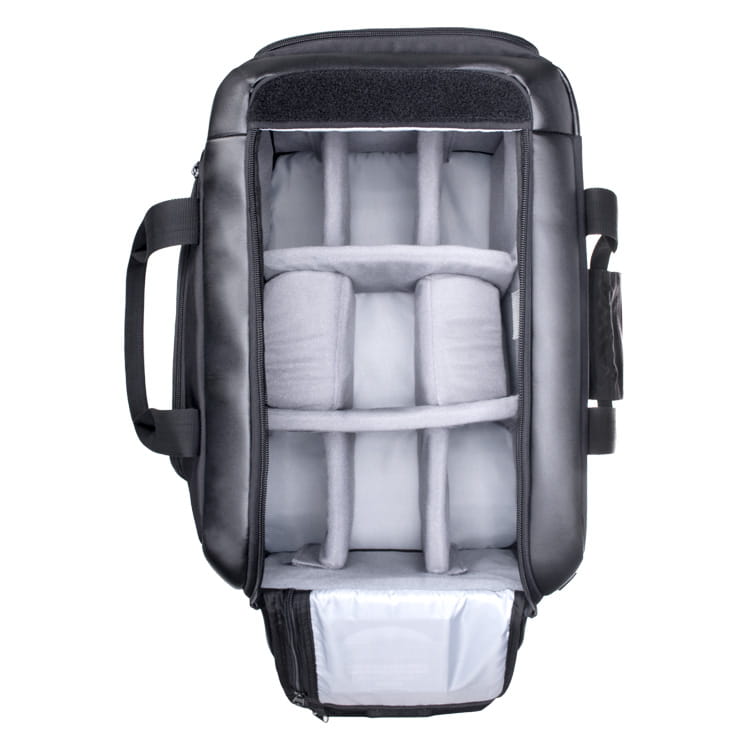 Dzięki zastosowaniu w torbie systemu komór wnętrze torby można idealnie dopasować do swoich potrzeb, posiadanego sprzętu oraz maksymalnie wykorzystać dostępną w torbie przestrzeń. Torba pomieści 2 aparaty, 6 obiektywów, 3 lampy błyskowe oraz wiele innych akcesoriów takich jak: filtry, ładowarki, piloty, akumulatory, itp.