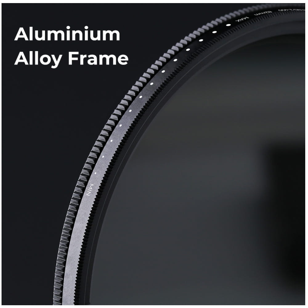 Ramka filtra K&F Concept Basic Fader NDX ND2 - ND400 - 77 mm ma 7 mm grubości. Smukła konstrukcja pozwala skutecznie uniknąć efektu winietowania, niezależnie od tego, z jakim obiektywem przyjdzie Ci pracować. Twoje kadry zachowają jednolitą kolorystykę, bez zaciemnień przy krawędziach.
