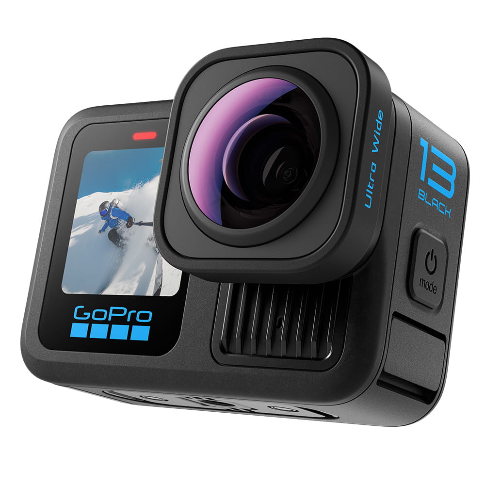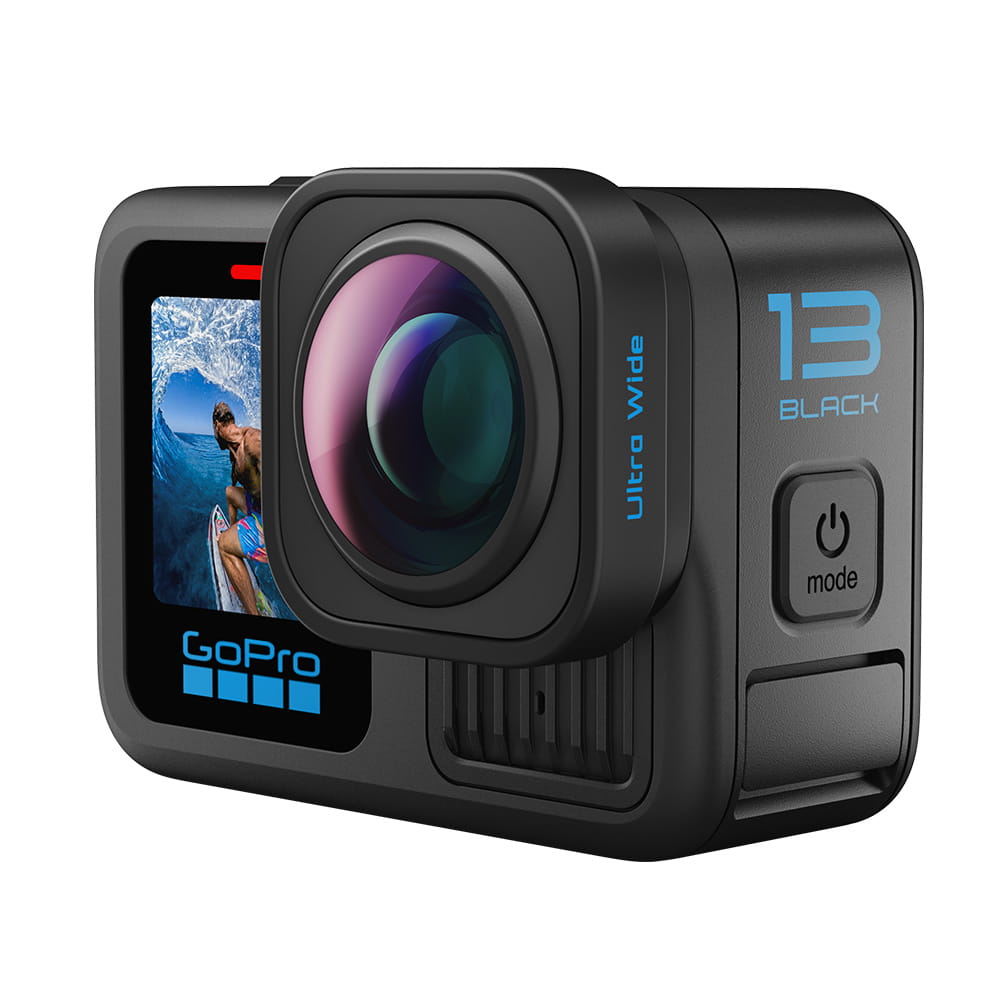 Kamera HERO13 Black automatycznie wykrywa obiektyw i dostosowuje ustawienia – bez konieczności dodatkowej konfiguracji. Wytrzymały i odporny na zarysowania obiektyw zapewnia wodoszczelność2 kamery po zamontowaniu i umożliwia rejestrowanie wciągających, pozbawionych wstrząsów nagrań z przygód.