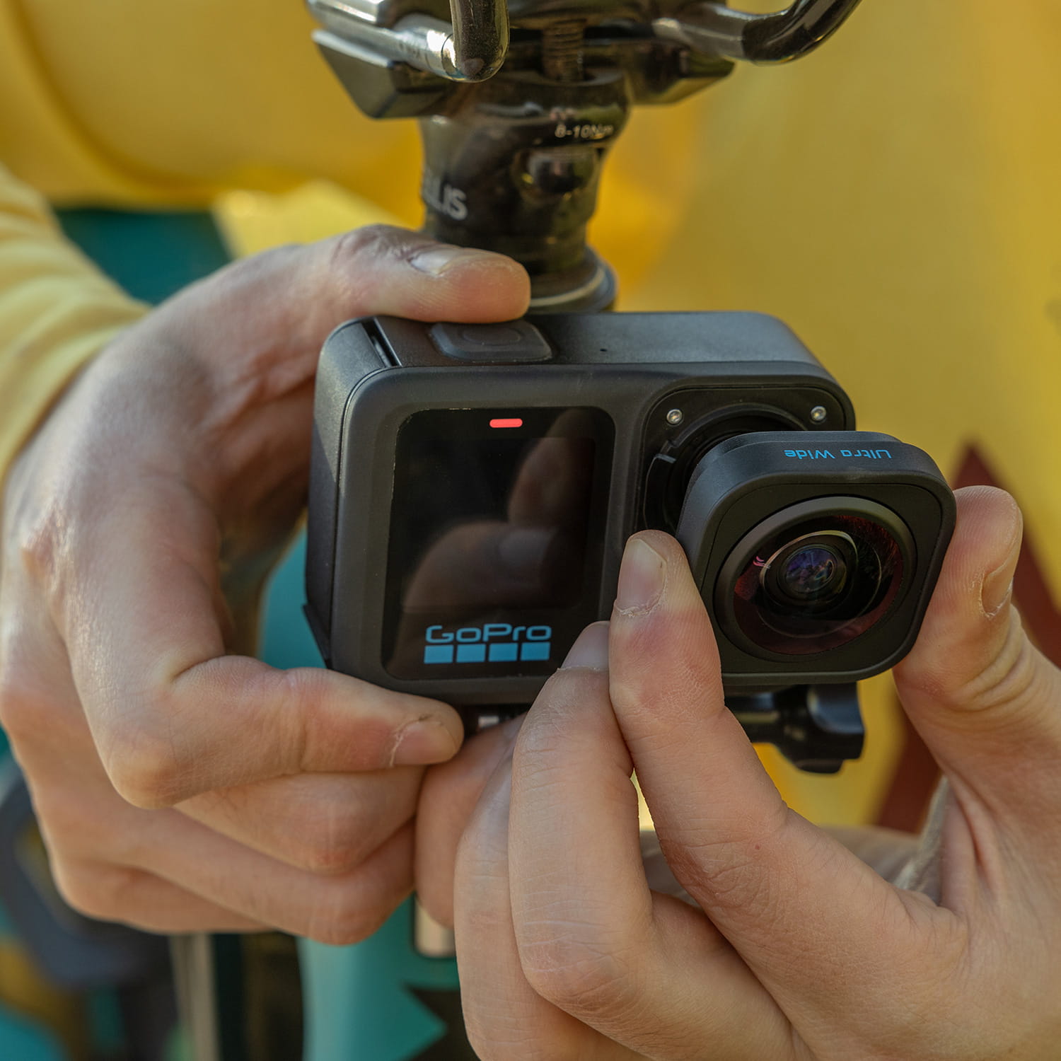 - Kamera HERO13 Black automatycznie rozpoznaje obiektyw po założeniu i przełącza się w tryb ultraszerokokątny. Z kolei po zdjęciu go powraca do ustawień standardowych.