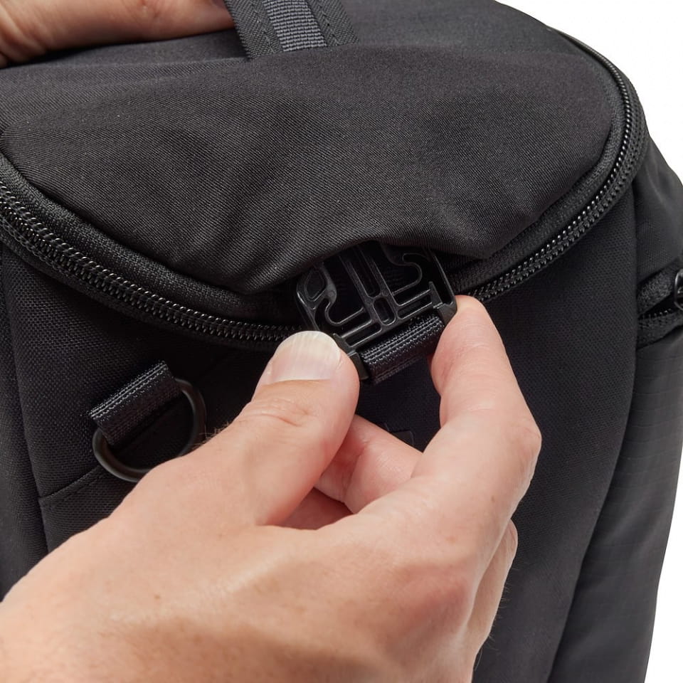 - Szybki dostęp: Specjalnie wyprofilowana klapa otwiera się na bok, ułatwiając chwyt aparatu, a klamra szybkiego domykania gwarantuje bezpieczeństwo w ułamku sekundy.