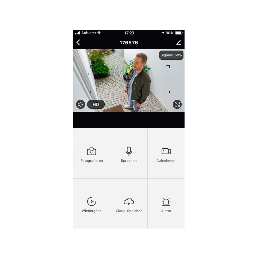 Kamera do monitoringu zapewnia wyraźny widok na posesję, od garaży po stajnie dla koni - i to w ostrej jak brzytwa jakości Full HD. Dzięki czujnikom ruchu, podglądowi na żywo i noktowizji, możesz zobaczyć swój dom i posesję za pomocą smartfona - dla bezpiecznego domu.