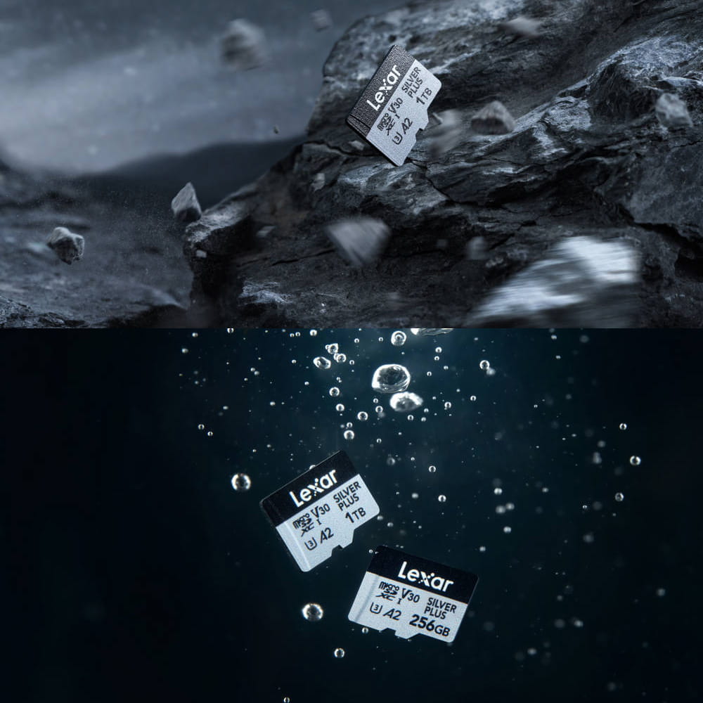 Karta została stworzona z myślą o trwałości. Jest wodoodporna, odporna na zużycie, odporna na temperaturę, promieniowanie rentgenowskie, wibracje, magnetyczność, wstrząsy i upadki3, dzięki czemu możesz mieć pewność, że zabierzesz ją ze sobą wszędzie, gdzie zabierze Cię sesja zdjęciowa. .