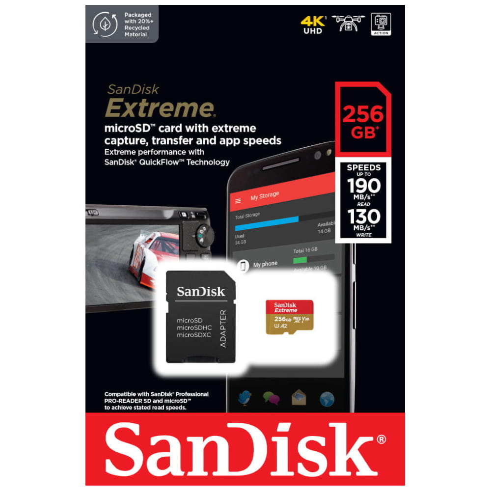 Prędkość odczytu 190 mb/s oraz zapisu do 130 mb/s, sprawia że może pracować z najnowszymi smartfonami, tabletami, aparatami oraz kamerami (np. takie jak GoPro)