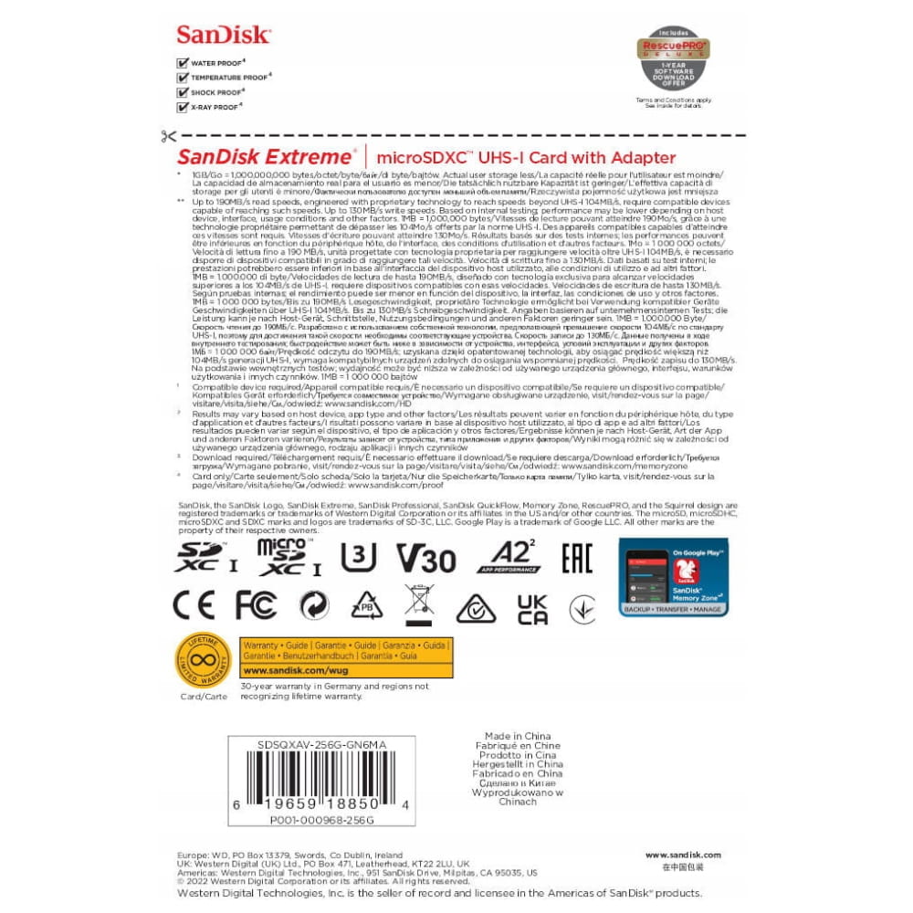 Oryginalna Karta pamięci SANDISK MICRO SDXC EXTREME UHS-I U3 256 GB + adapter
