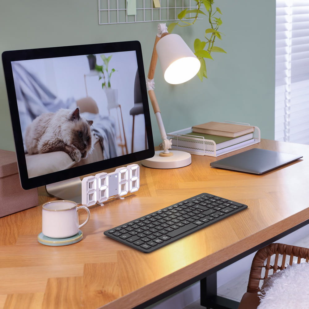Wszędzie gotowa do pracy: klawiatura do wielu urządzeń ma 1 kanał radiowy i 2 kanały Bluetooth, dzięki czemu może być podłączona do maksymalnie 3 urządzeń końcowych jednocześnie, a przełączanie możliwe jest w mgnieniu oka za dotknięciem przycisku