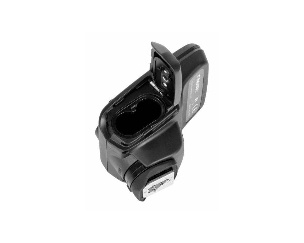 YN560-TX Pro jest zasilany za pomocą dwóch baterii alkalicznych lub akumulatorków AA. Komora na baterie została umieszczona z boku urządzenia, aby umożliwić szybką i wygodną wymianę akumulatorów w trakcie pracy.