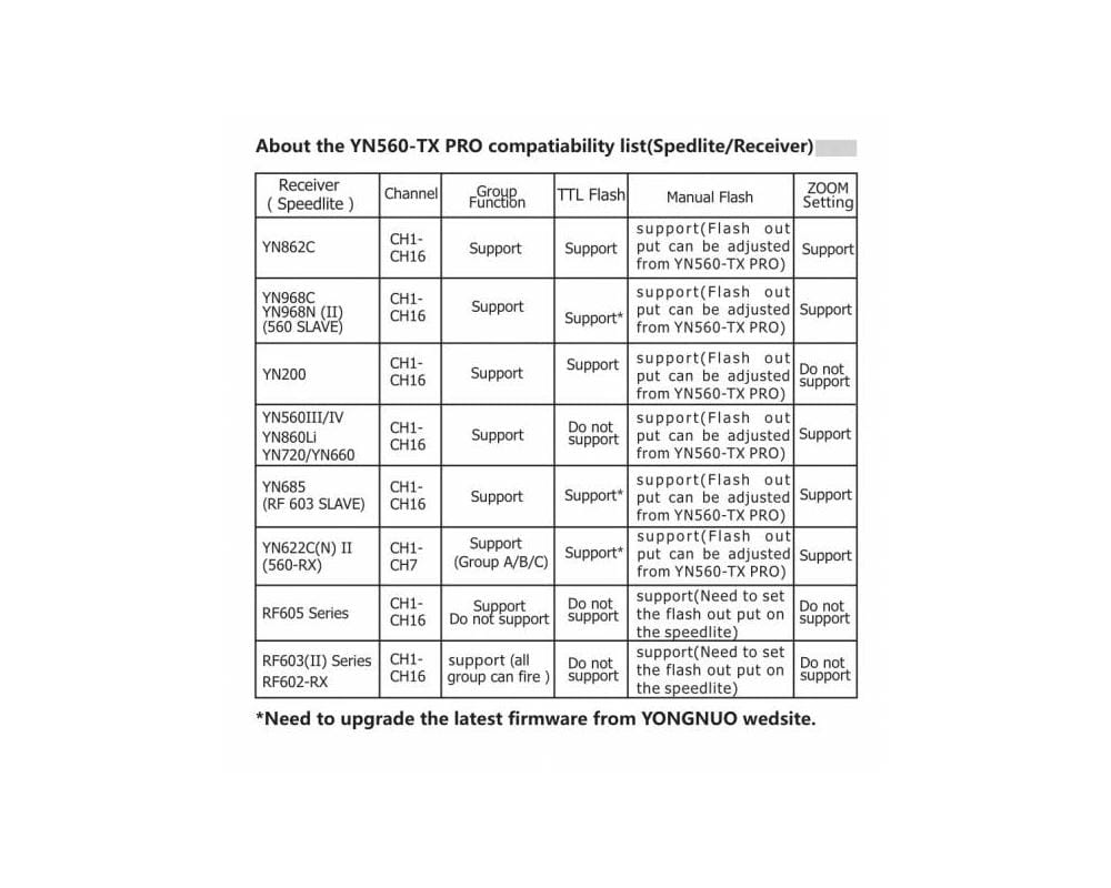 Kontroler Yongnuo YN560-TX Pro został wyposażony w port micro USB. Najnowsze oprogramowanie możemy pobrać z oficjalnej strony internetowej Yongnuo. Producent dba o ciągły rozwój swoich produktów, wprowadzając nowe aktualizacje.