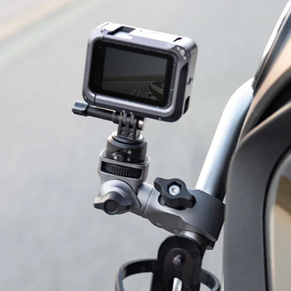 Zacisk o regulowanej szerokości 17-37 mm pozwala bez problemu zamontować mocowanie w różnych miejscach – nie tylko na kierownicy, ale też na przykład na lusterku, na poręczy czy na cienkiej gałęzi. Akcesorium zostało też wyposażone w śrubę ¼ cala, dzięki czemu jest kompatybilne z wieloma kamerami sportowymi, uchwytami na telefon i selfie stickami.