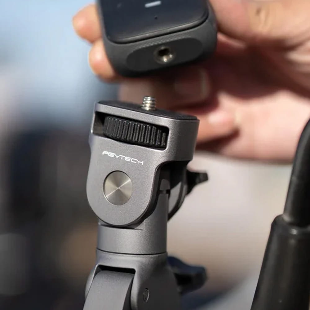 Ustaw kamerę dokładnie tak, jak chcesz, i zyskaj niecodzienną perspektywę. Mocowanie PGYTECH pozwala regulować kąt nachylenia w zakresie 180° i obraca się w zakresie 360°. Możesz też zablokować je w wybranej pozycji, aby zapewnić zamontowanemu na nim urządzeniu niezbędną stabilność.