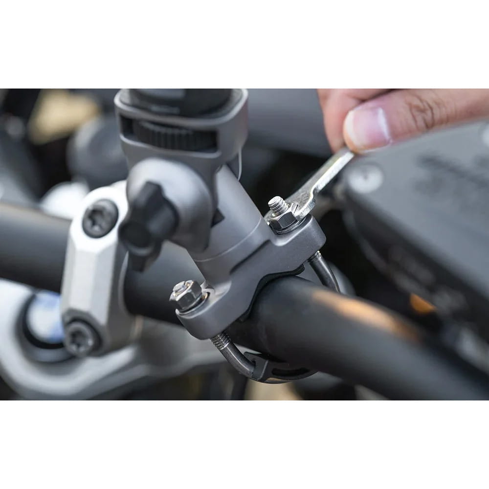 Model P-GM-172 wyposażono w mocowanie U-bolt, które zapewnia niezawodną przyczepność do motocykla. Dwa dodatkowe bloki amortyzujące umożliwiają montaż na rurkach o średnicach od 12,7 do 23 mm oraz od 23 do 33 mm. Konstrukcja wykonana z wytrzymałego stopu aluminium gwarantuje odporność na intensywne użytkowanie i trudne warunki.