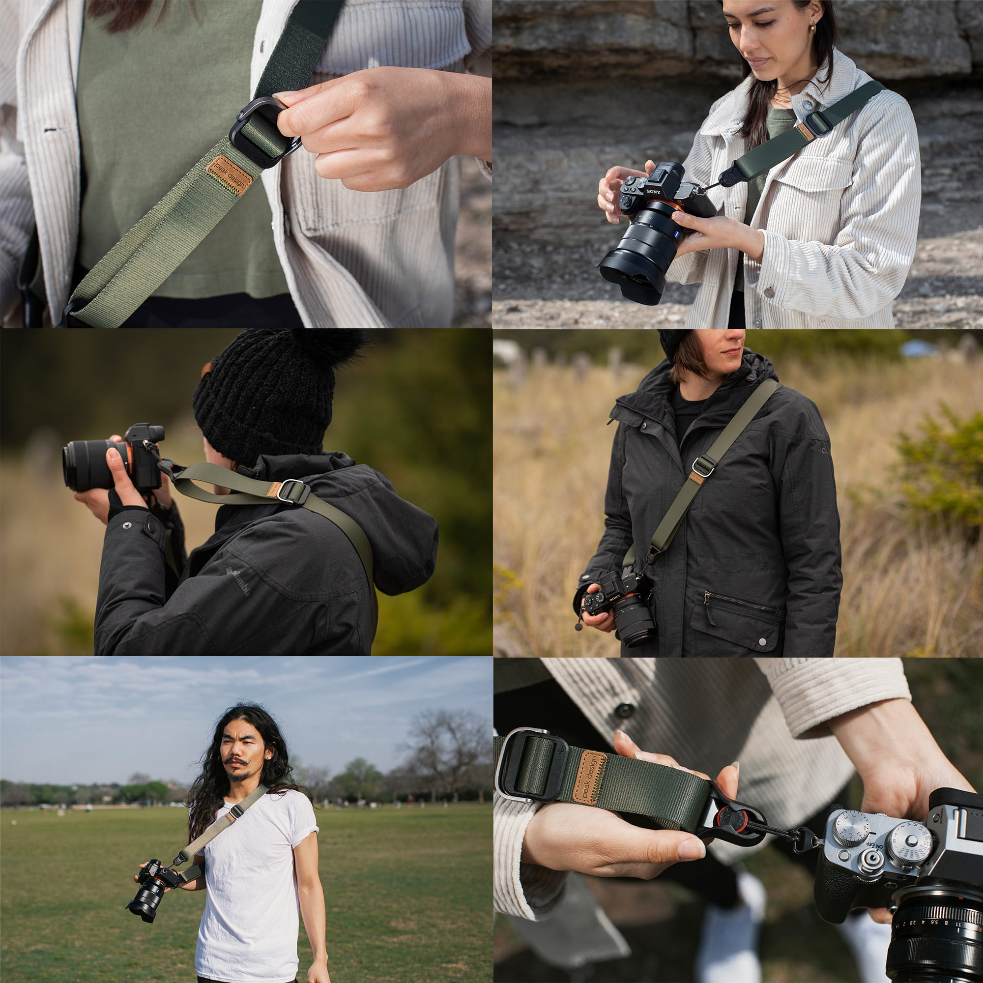 Zastosowanie innowacyjnego systemu kotwic umożliwia proste i szybkie odpięcie aparatu od paska umożliwiając podczepienie go do innych pasków Peak Design (np. paska na rękę CLUTCH).