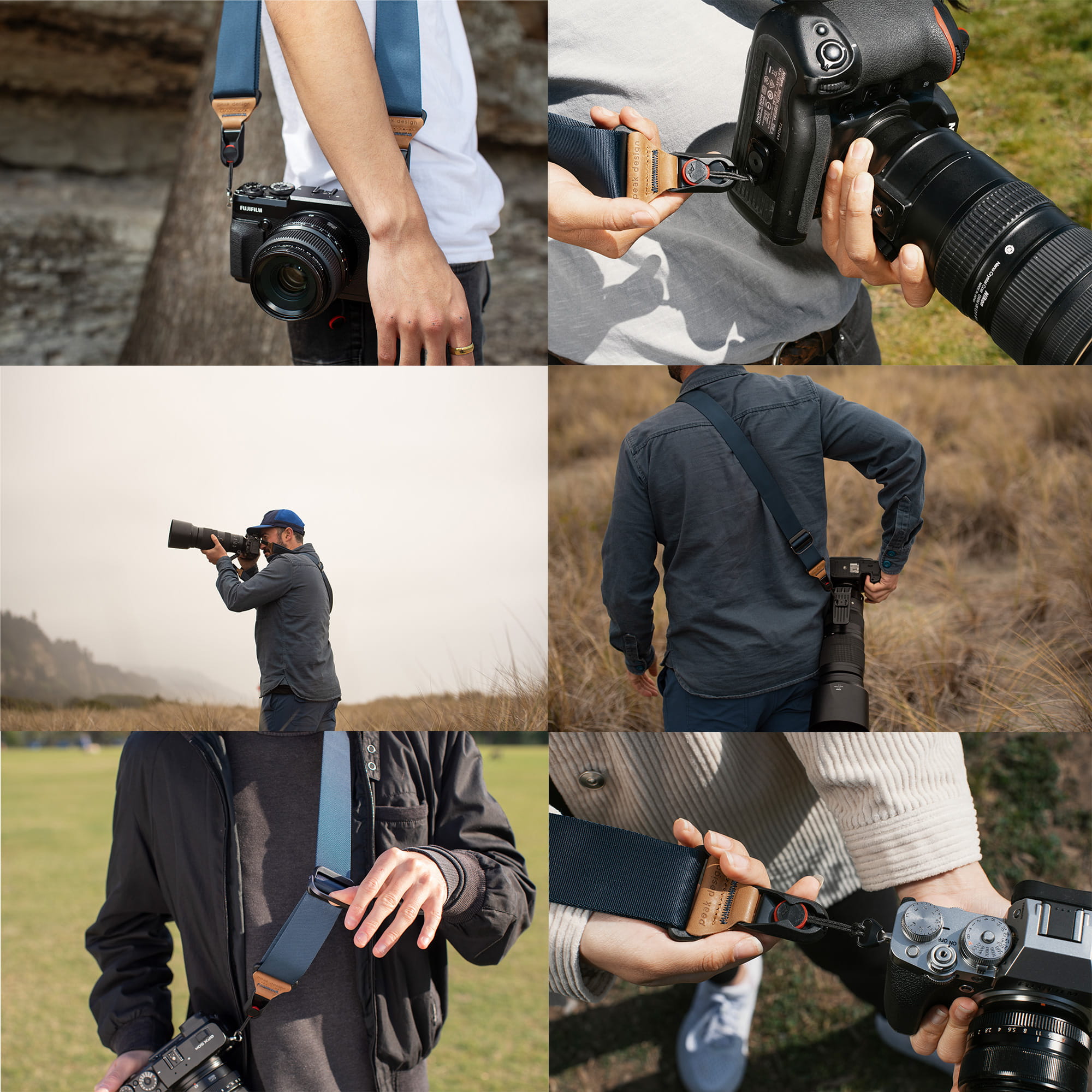 Zastosowanie innowacyjnego systemu kotwic umożliwia proste i szybkie odpięcie aparatu od paska umożliwiając podczepienie go do innych pasków Peak Design (np. paska na rękę CLUTCH).