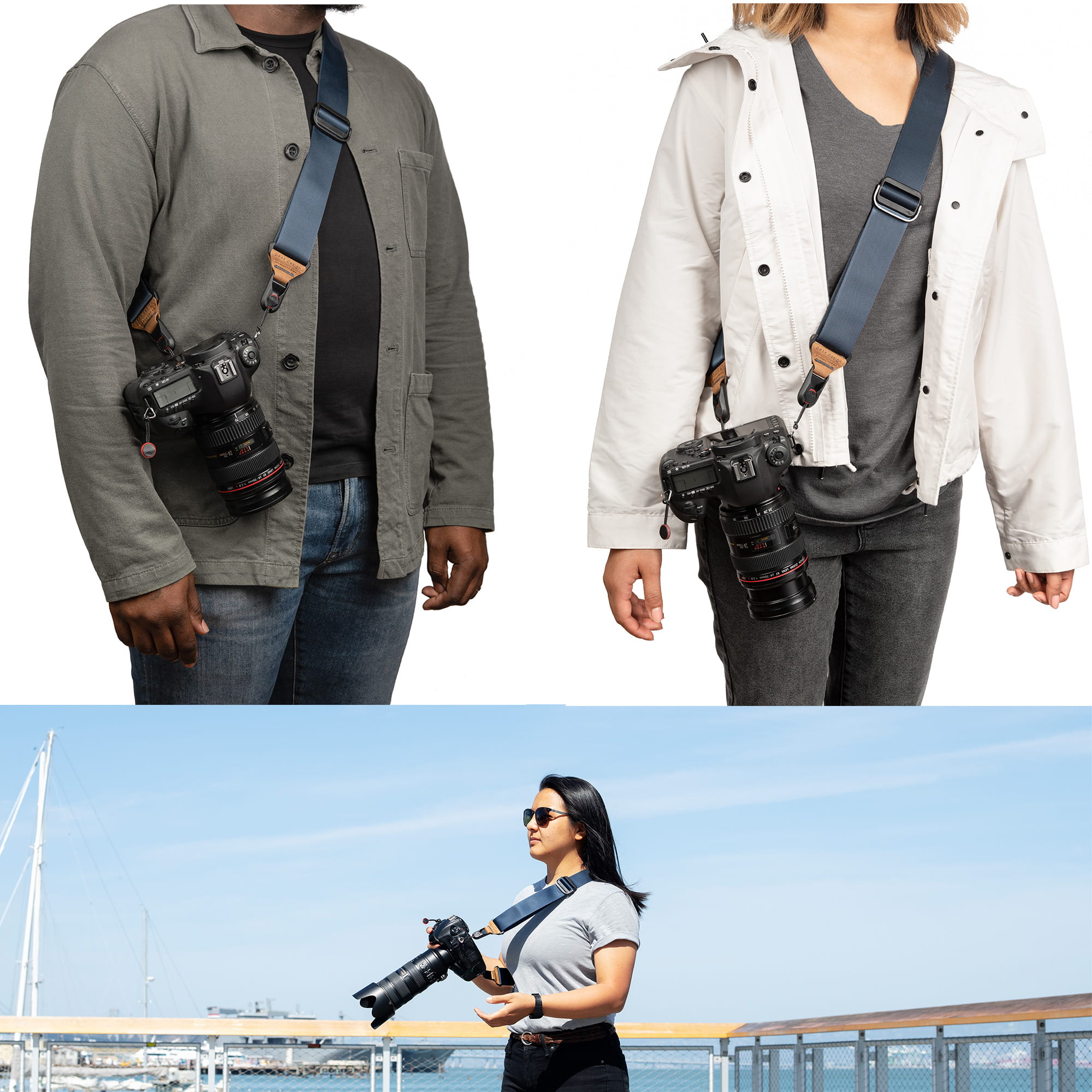 Pasek SLIDE posiada dodatkowy, aluminiowy uchwyt służący do regulacji długości. Niezależnie od tego, czy chcesz zmienić wysokość paska na szyi, czy przełożyć przez ramię, zmiana długości zajmuje dosłownie ułamek sekundy. W dodatku zrobisz to przy użyciu jednej ręki. To wyjątkowe rozwiązanie, które zmienia pasek SLIDE w ultra mobilny system noszenia aparatu.