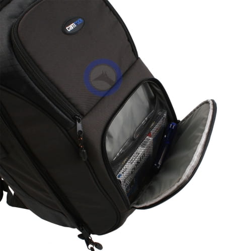 Na górze plecaka znajduje się otwór na słuchawki. Daje to możliwość słuchania muzyki nawet w ekstremalnych warunkach pogodowych bez obawy o zamoczenie sprzętu.