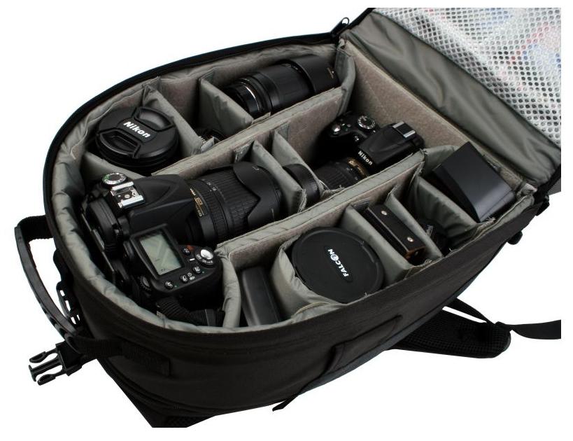 1. Komora główna składa się z czternastu przegród na sprzęt fotograficzny. Przestawialne przegrody pozwalają na modyfikowanie wnętrza komory i zapewniają optymalne wykorzystanie przestrzeni oraz perfekcyjne dopasowanie do sprzętu. Dzięki tak dużej ilości miejsca plecak pomieści dowolny sprzęt fotograficzny oraz mnóstwo dodatkowych akcesoriów. Wszystkie ścianki są usztywnione oraz wypełnione miękkim materiałem chroniącym sprzęt.