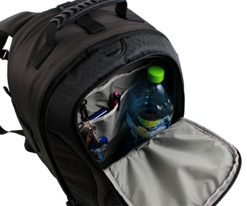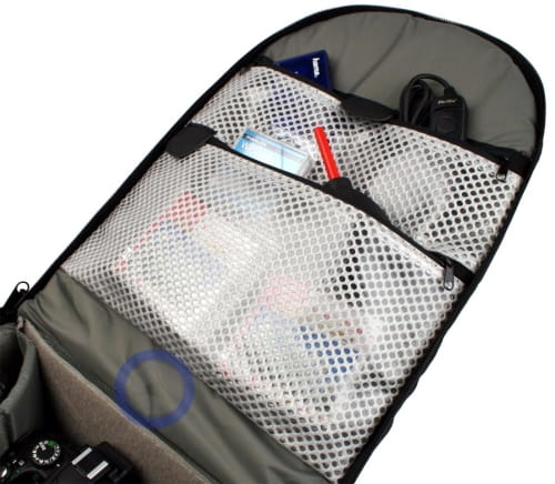 Na boku znajdują się specjalne uchwyty przeznaczone do przenoszenia statywu lub dodatkowych akcesoriów. Oddychający materiał na ściance przylegającej do pleców zapewnia wentylację podczas noszenia.