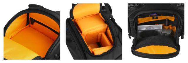 W głównej komorze pomieści się lustrzanka z obiektywem (również z teleobiektywem), dodatkowe 2-3 obiektywy, lampa błyskowa, zapasowy korpus. Przednia kieszeń idealnie nadaje się do przechowywania akcesoriów takich jaki filtry, redukcje czy zapasowe akumulatorki.