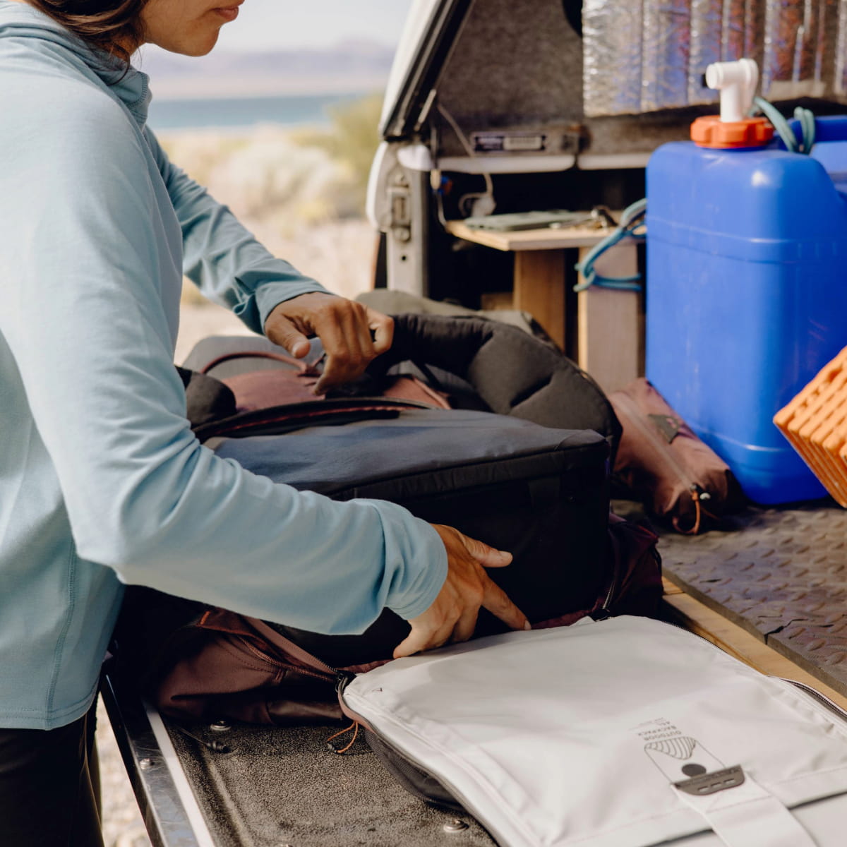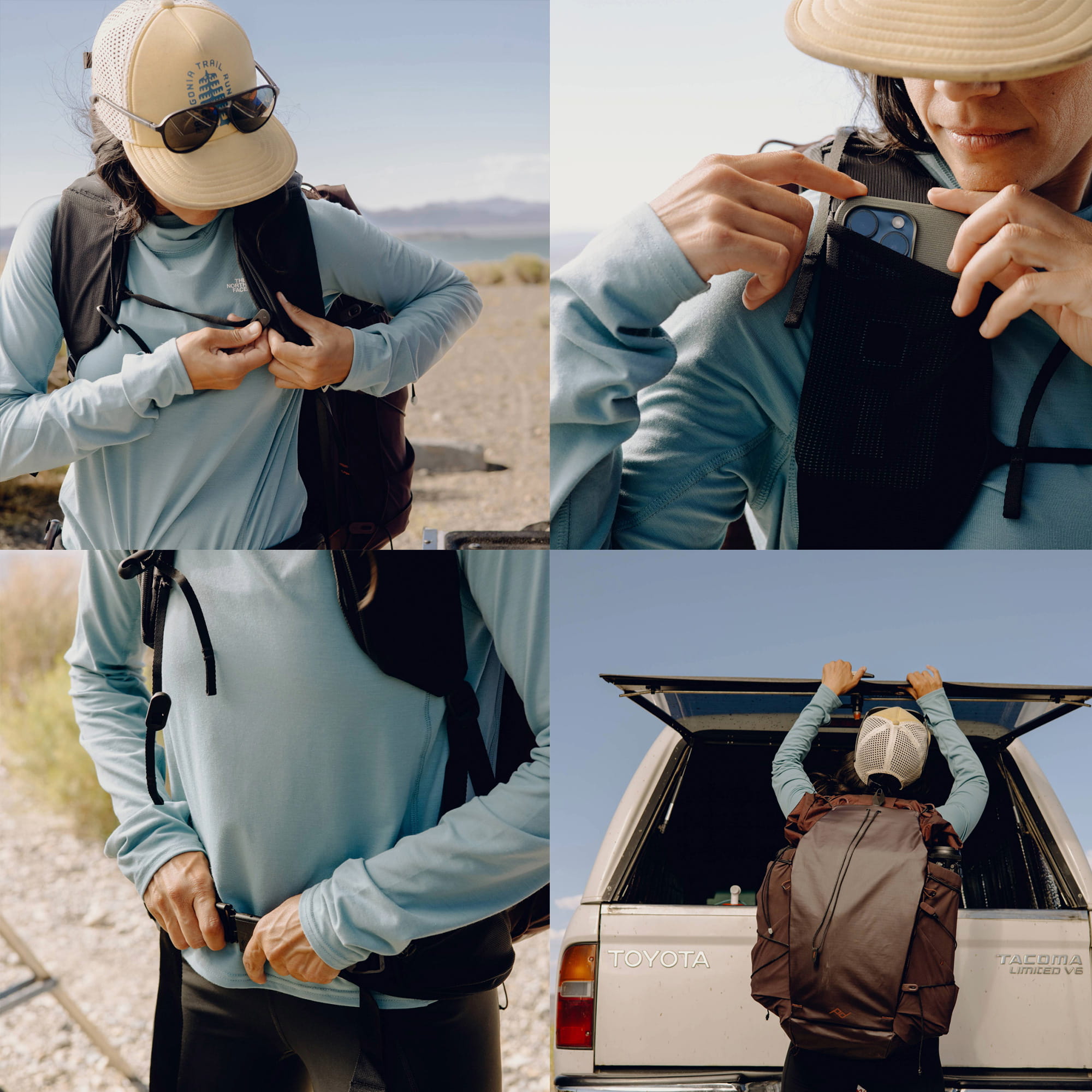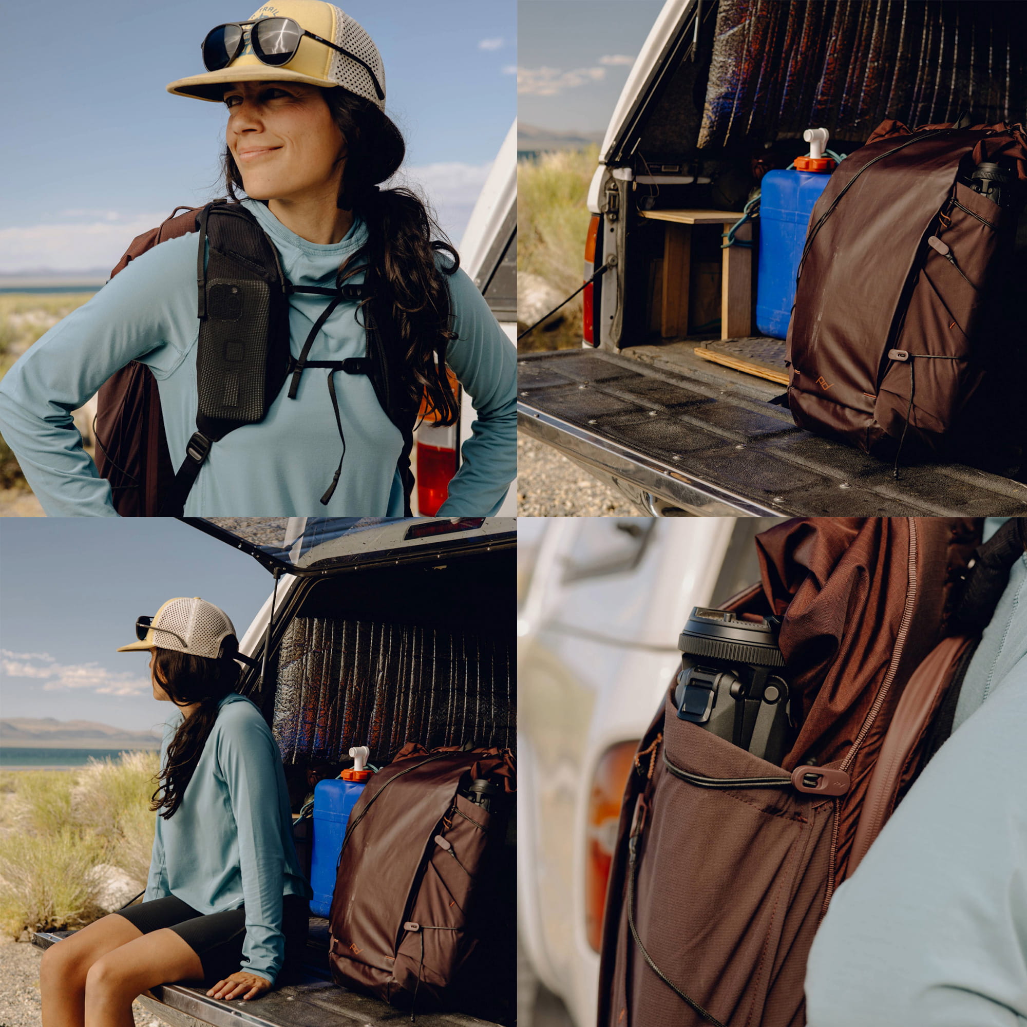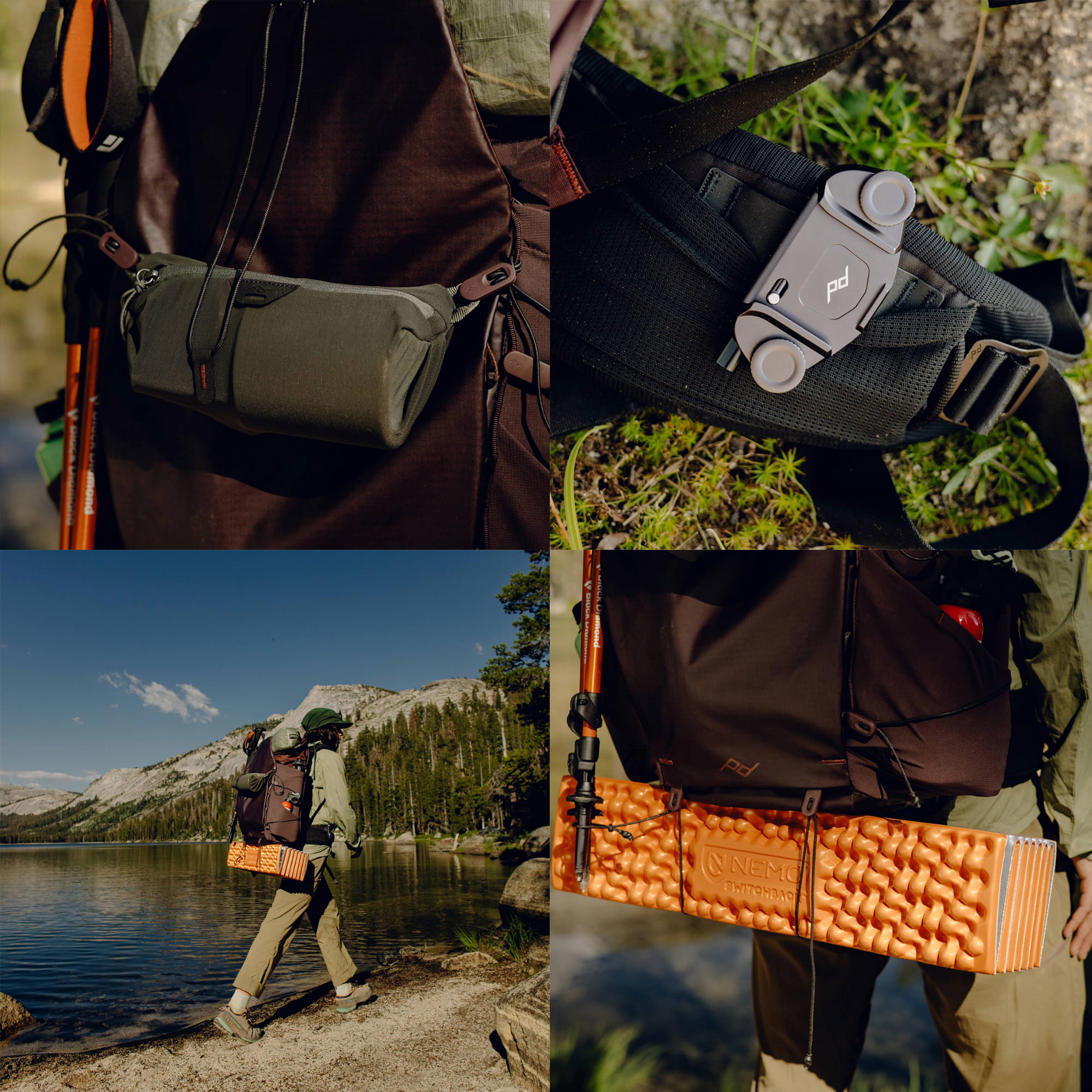 - Użyj linek Carry Cords i pętli Gear Loops do montażu ultralekkich kostek Peak Design (sprzedawanych oddzielnie) do modułowego przechowywania zewnętrznego
