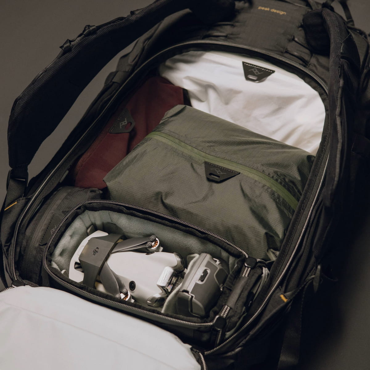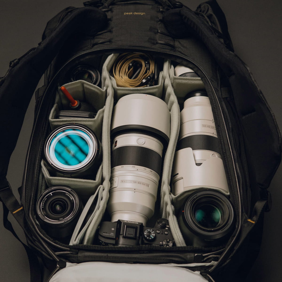 - Całkowicie konfigurowalny modułowy schowek wewnętrzny z narzędziami do pakowania Peak Design (sprzedawane oddzielnie)