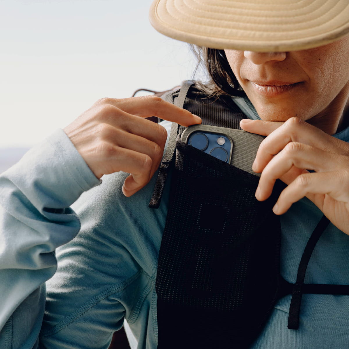 - Paski naramienne wyposażone są w siatkowe kieszenie z ukrytymi punktami mocowania Capture Clip (klips sprzedawany oddzielnie)