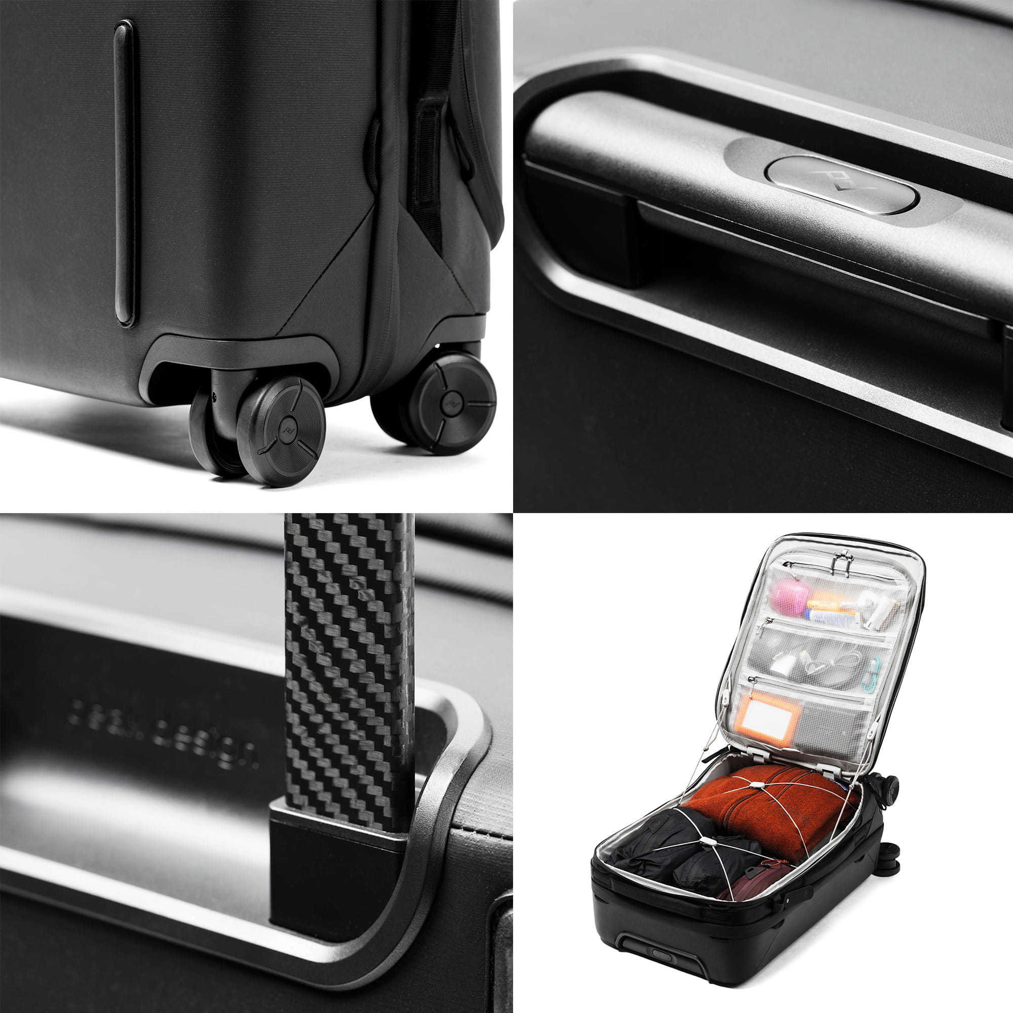Walizka jest kompatybilna z wkładami Peak Design Camera Cube oraz wkładami do pakowania, co pozwala dopasować wnętrze walizki do własnych potrzeb.