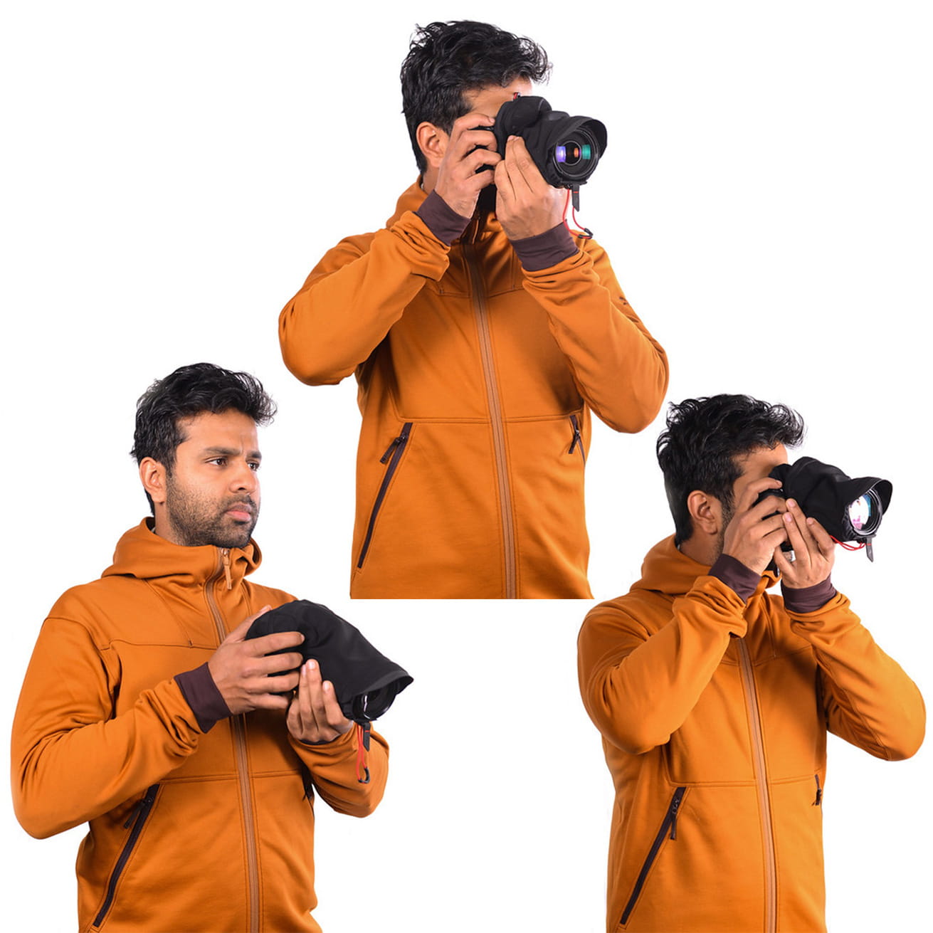 Najważniejszą rola pokrowca jest ochrona, dzięki materiałowi z membraną powstrzymującą wodę może być używany nawet w silnym deszczu. Idealnie też sprawdzi się w bardzo niesprzyjających dla większości fotografów sytuacjach na plaży, chroniąc przed dostaniem się piasku w szpary między pokrętłami.