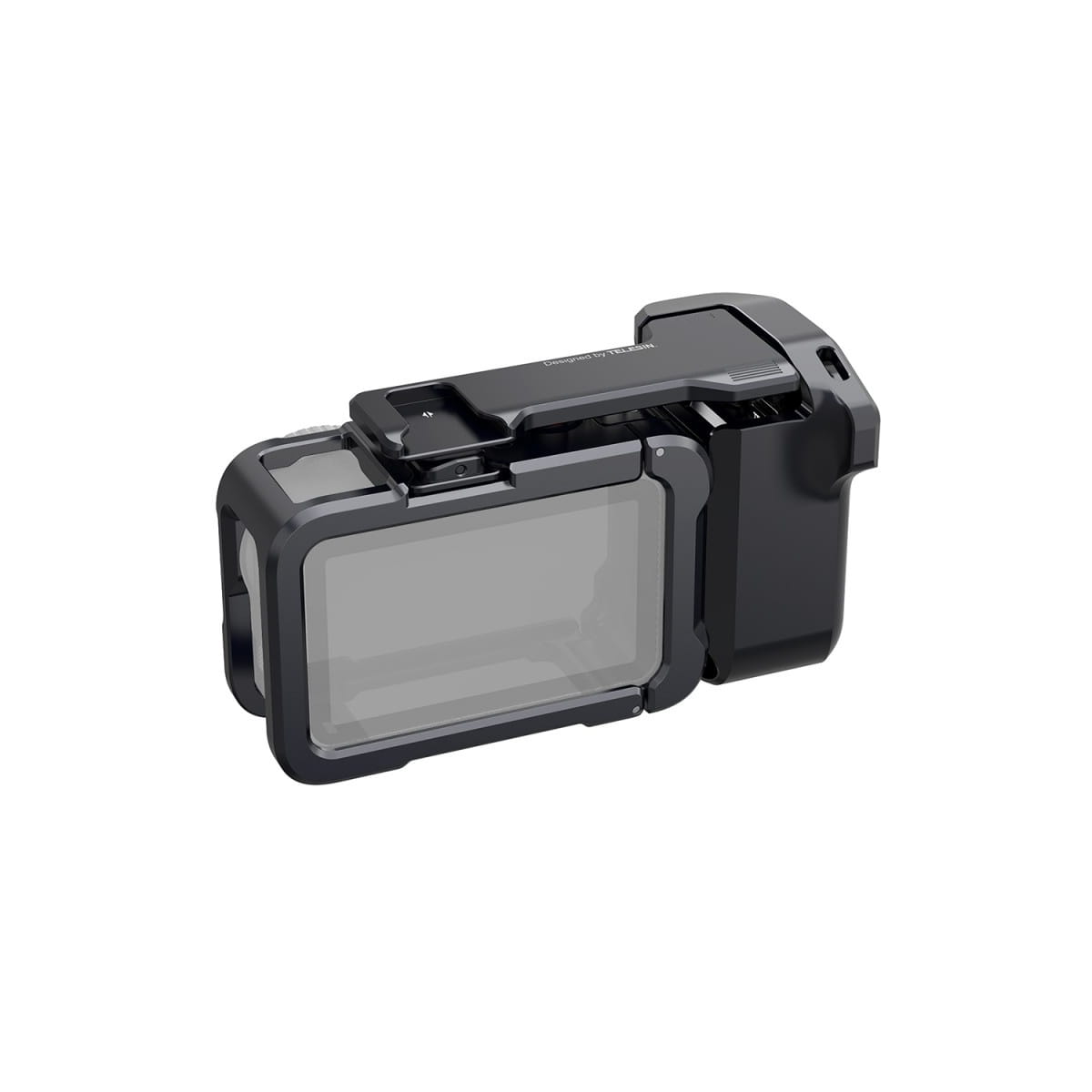 W skrócie: Zaawansowany zestaw modyfikujący kamerę sportową w wygodne narzędzie do fotografii ulicznej i vlogowania. Klatka z gripem i mechanicznym spustem. Kluczowe cechy: