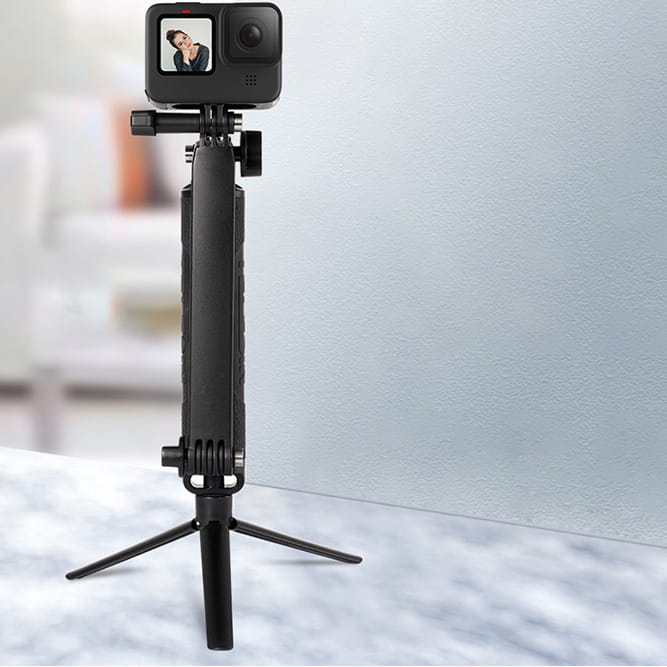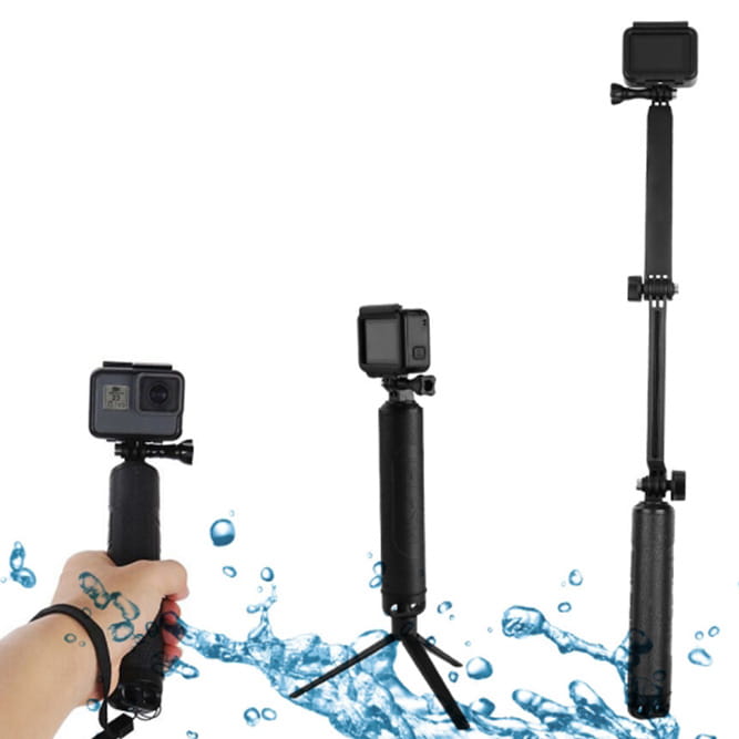 To wyjątkowe akcesorium sprawdzi się w wielu różnych zastosowaniach. Może pełnić rolę uchwytu ręcznego oraz wygodnego w użyciu selfie sticka. Produkt został też wyposażony w rozkładane nóżki, w łatwy sposób zmienisz go zatem w stabilny statyw. Akcesorium jest także wodoodporne, a dzięki przemyślanej konstrukcji doskonale unosi się na wodzie. Nadaje się więc również do wykonywania spektakularnych ujęć nad morzem lub oceanem.