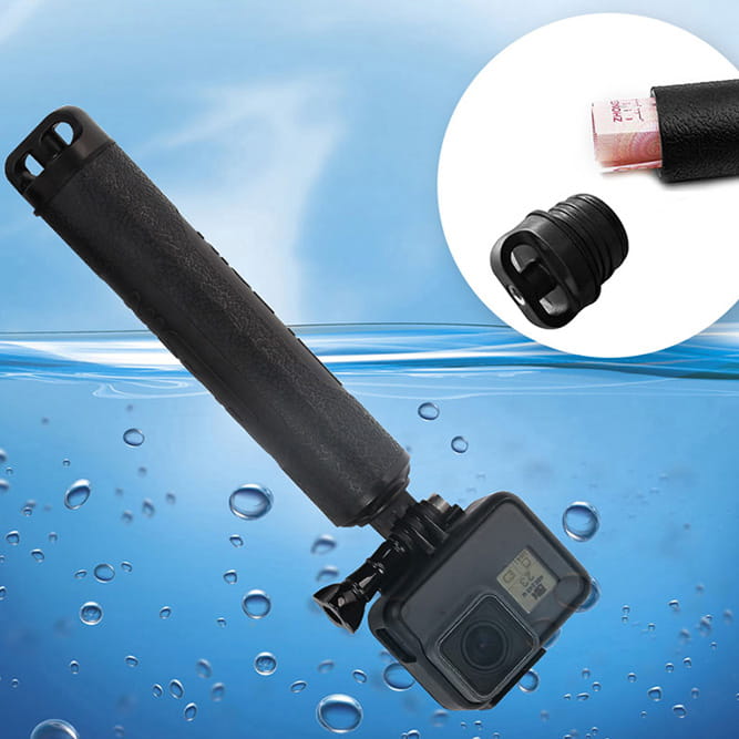 Wewnątrz uchwytu znajdziesz pustą przegródkę, która umożliwia wygodne przechowywanie niewielkich przedmiotów. Możesz też nalać do niej wody, aby akcesorium lepiej utrzymywało się na odpowiednim poziomie pod powierzchnią morza czy jeziora. To Twój nowy sposób na tworzenie oryginalnych, podwodnych ujęć!