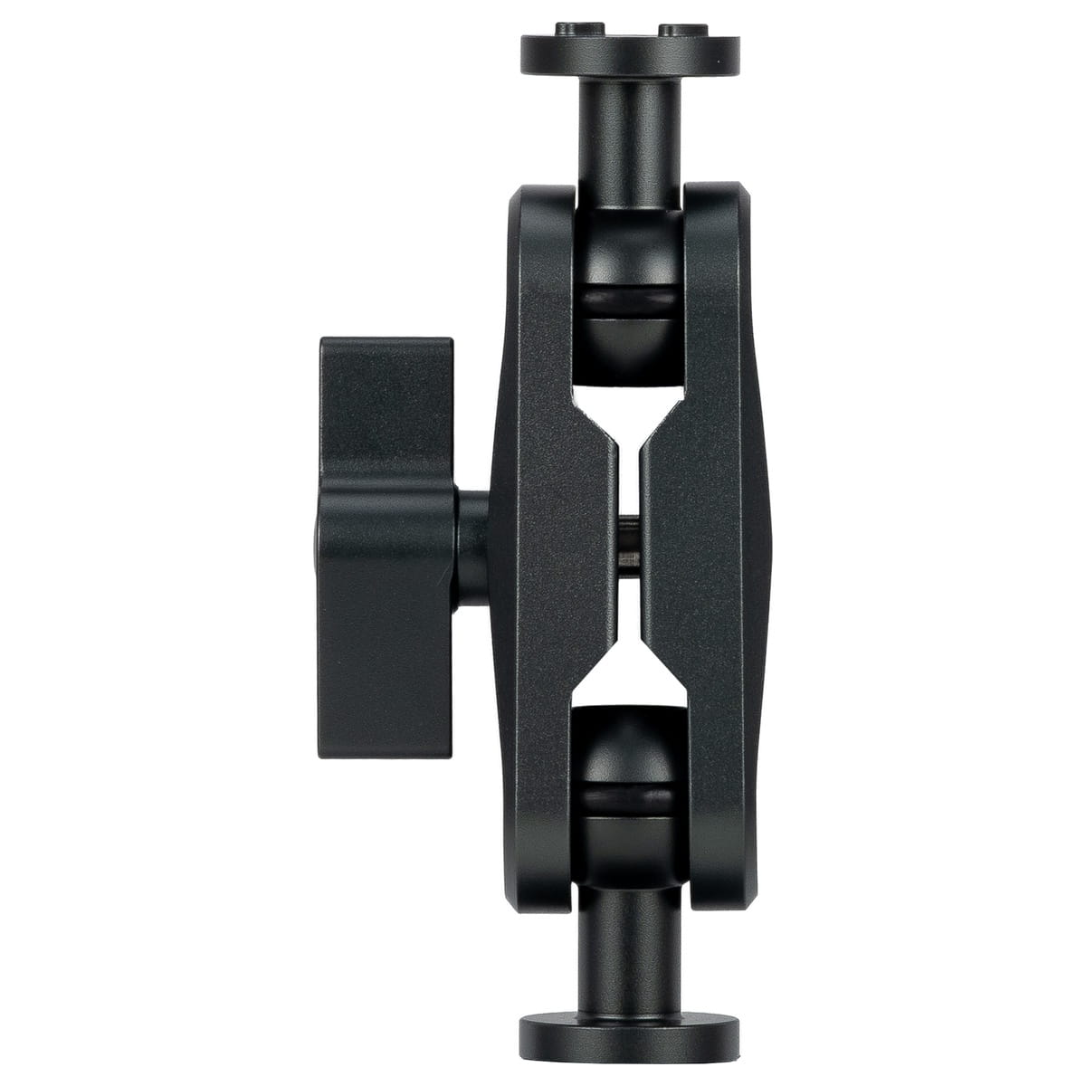 Najważniejszym elementem zestawu akcesoriów Newell do aparatów i kamer jest uniwersalne ramię przegubowe – typowy uchwyt „magic arm”, wyposażony w dwie niezależne głowice kulowe. Każda z nich zakończona jest płytką montażową z męskim gwintem 1/4" oraz pinami lokalizacyjnymi. Kluczową zaletą tego rozwiązania jest blokowanie obu głowic jednym pokrętłem – wystarczy poluzować, ustawić pożądany kąt i dokręcić, by uzyskać stabilne, nieporuszalne połączenie. Szeroki zakres ruchu pozwala precyzyjnie pozycjonować zamontowane akcesoria w niemal dowolnej płaszczyźnie, co świetnie sprawdza się podczas montażu lamp, mikrofonów czy monitorów podglądowych na klatce operatorskiej.